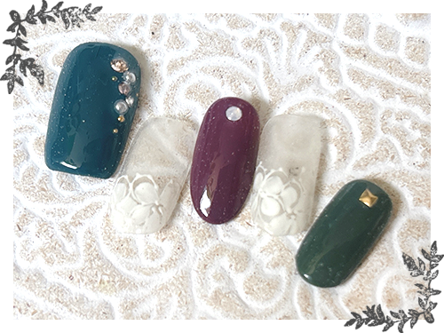 フットジェルネイルは、ハンドデザインをネイリストと相談しながらアレンジいたします。(¥10,500~)